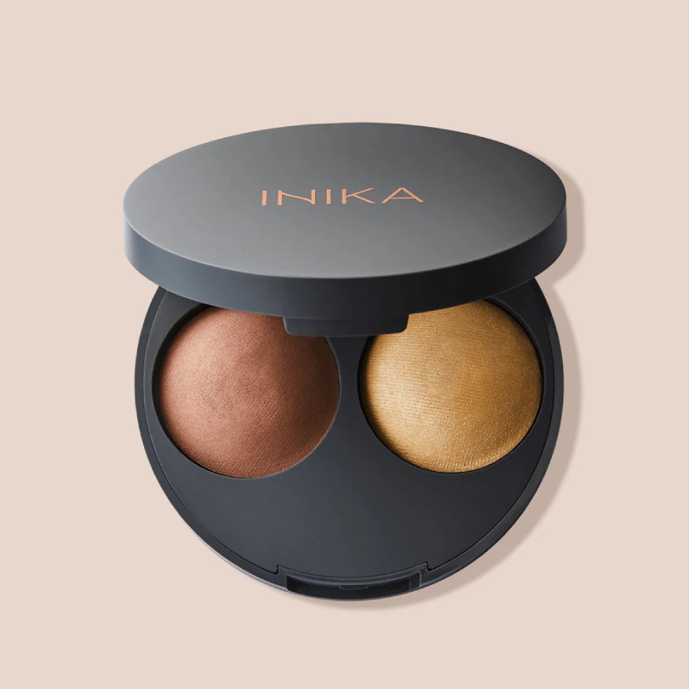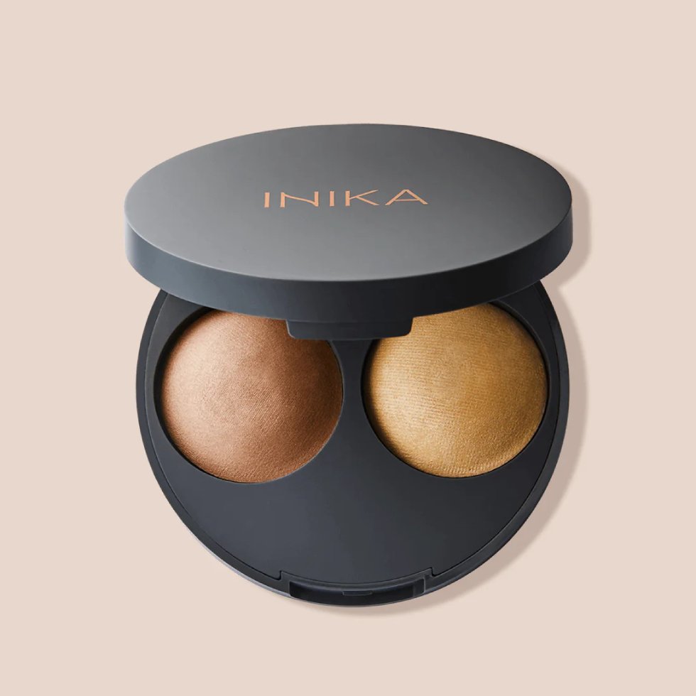 Create a sculpted effect with this bronzed contour powder and natural champagne highlight duo. INIKA Organic Baked Contour Duo is made from a 100% Natural, pure mineral formula free from fillers, parabens and talc.